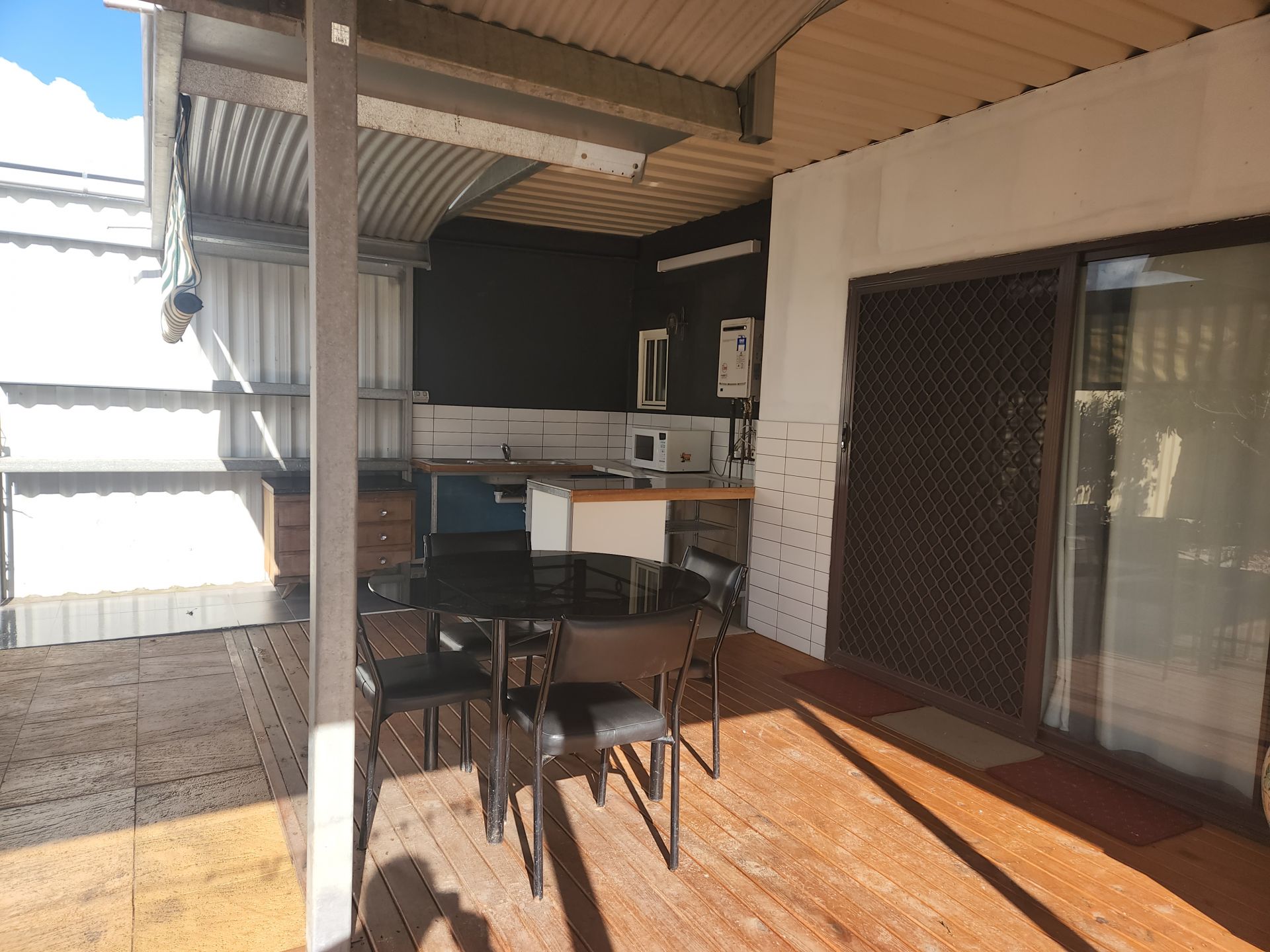 Paved undercovered alfresco area