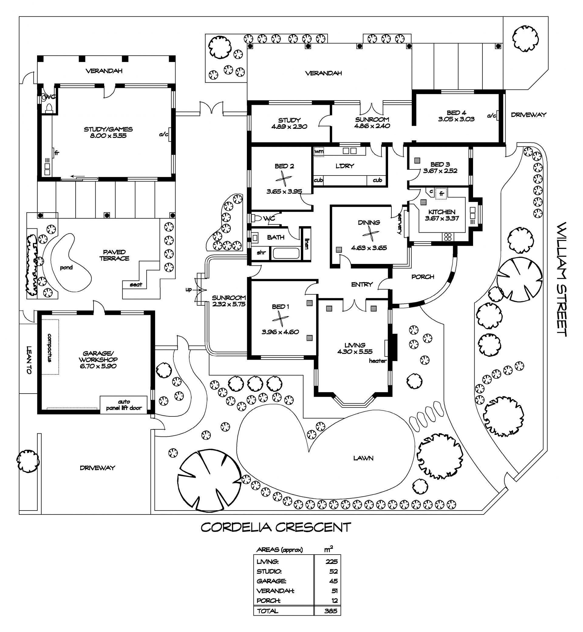 Manicured front & rear gardens